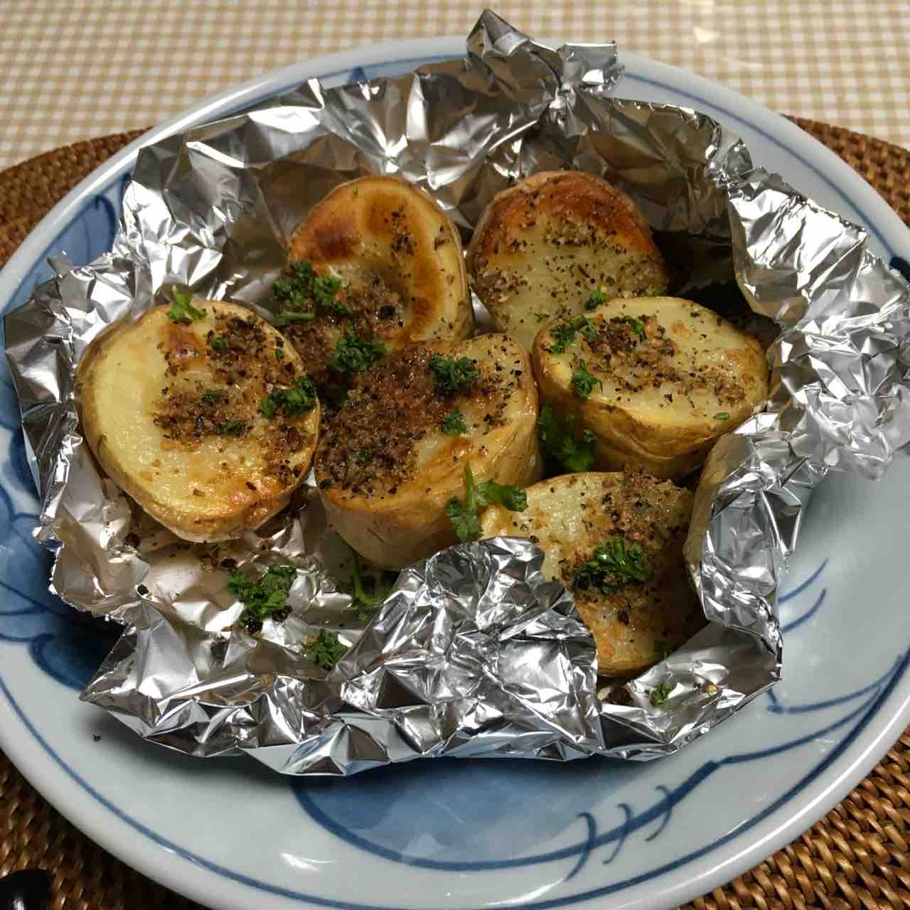 ジャガイモで、バター風味のガーリックオニオンソルト焼きを♩