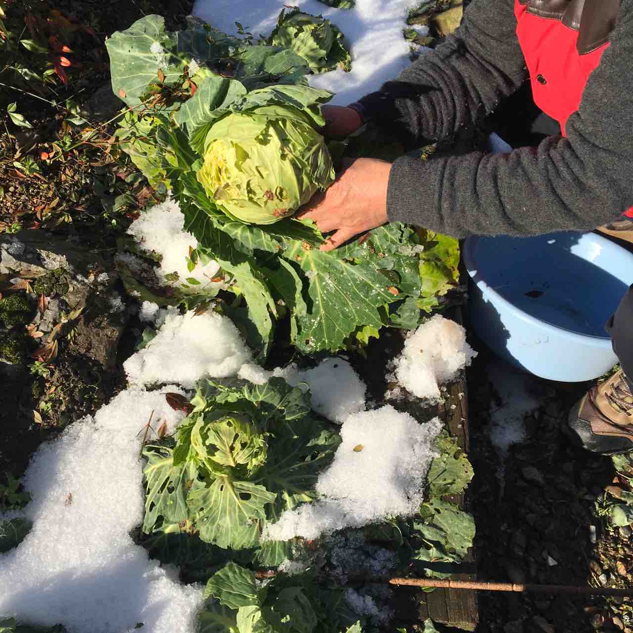 今まで雪に埋まっていたのですが、この天気で雪が溶け、キャベツが顔を出しましたw