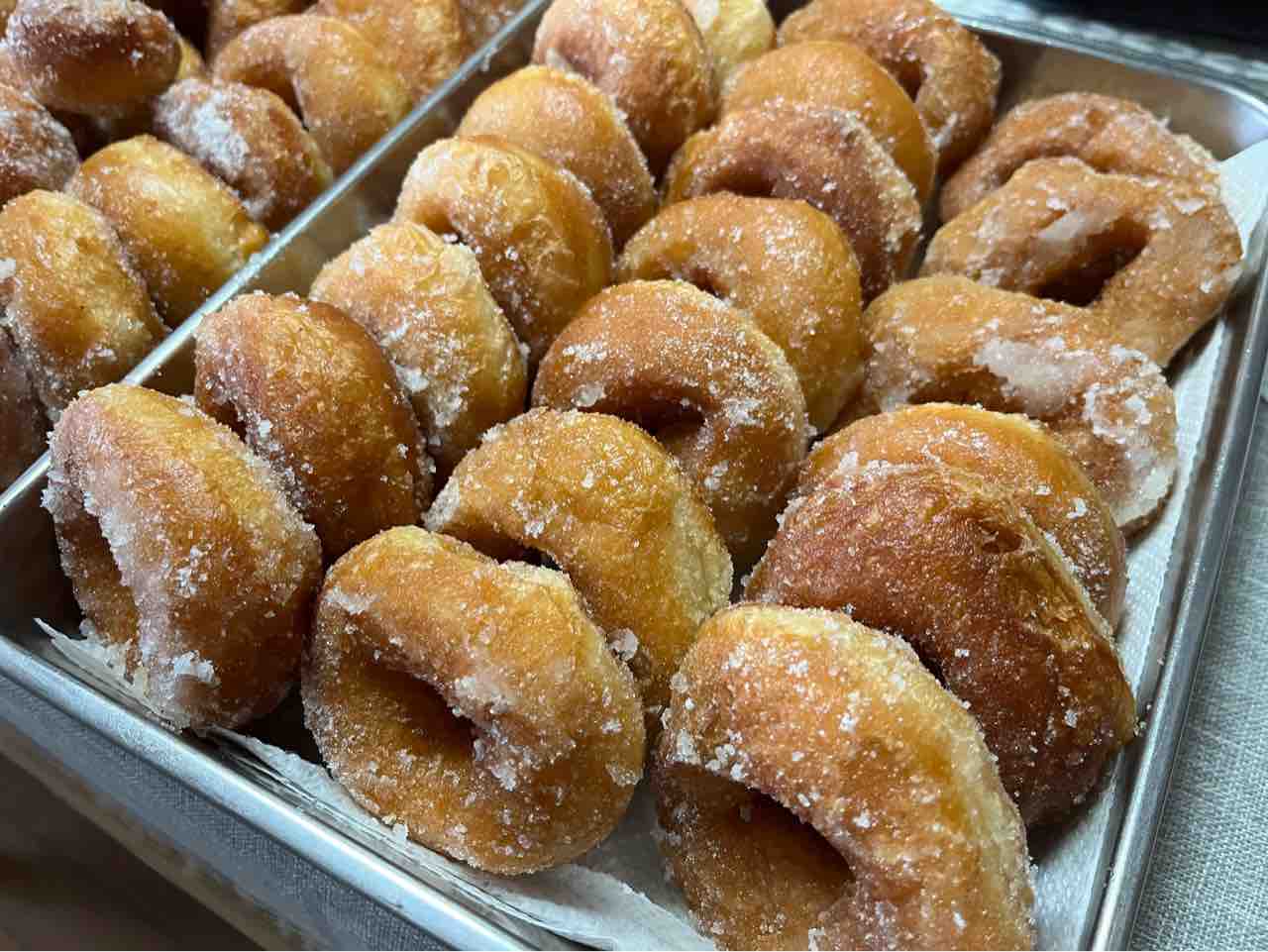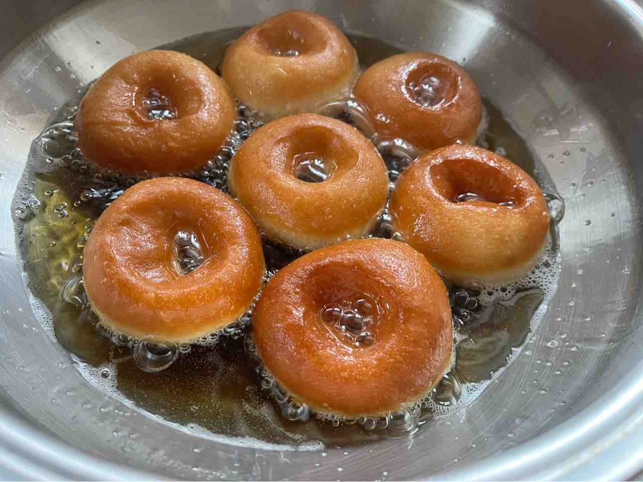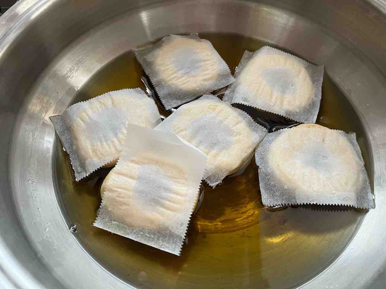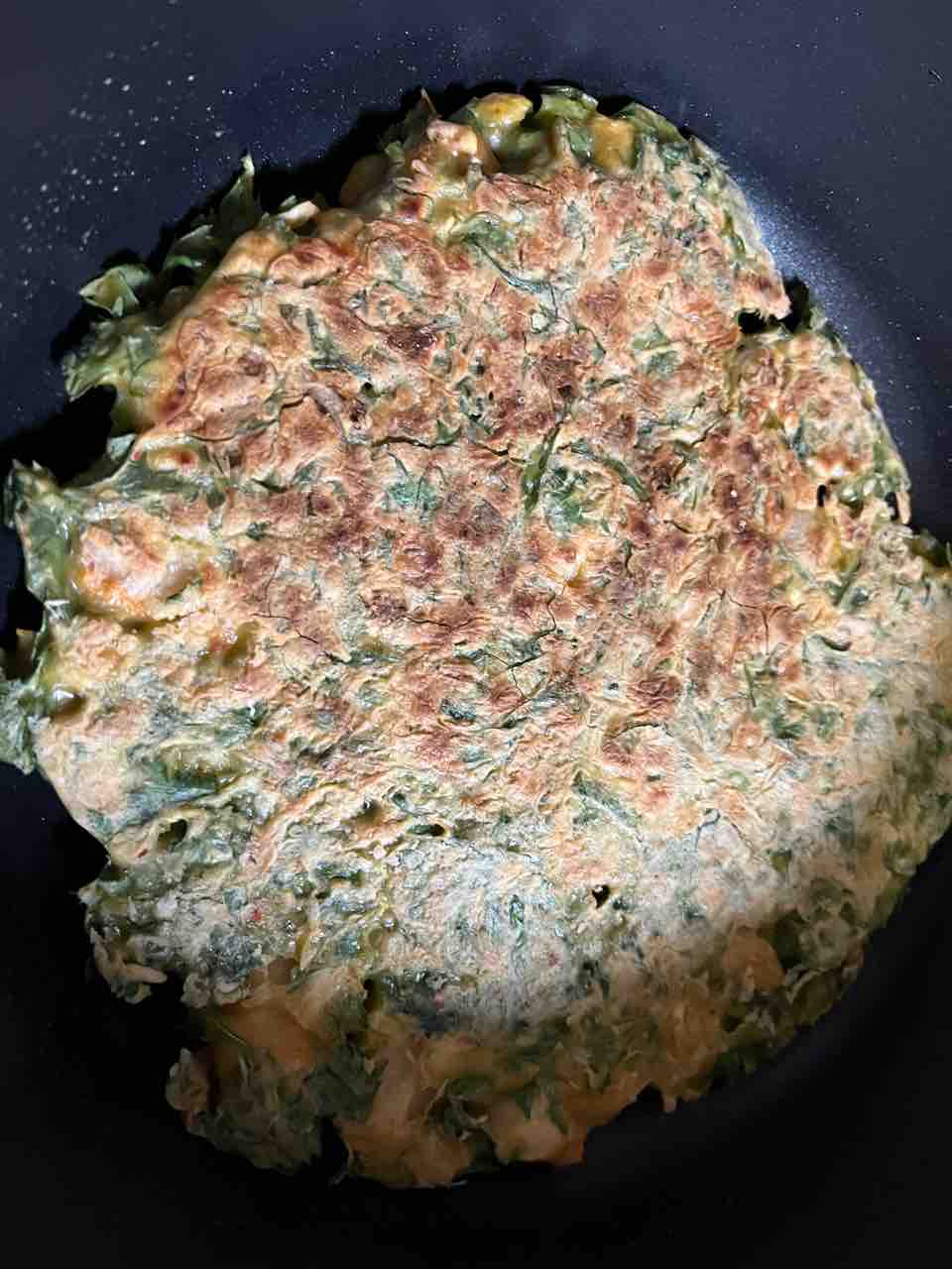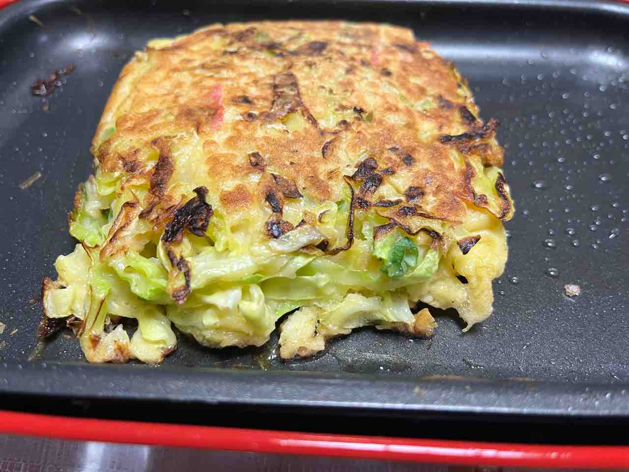 フライパンを熱し、ごま油を薄く伸ばして生地を焼きます