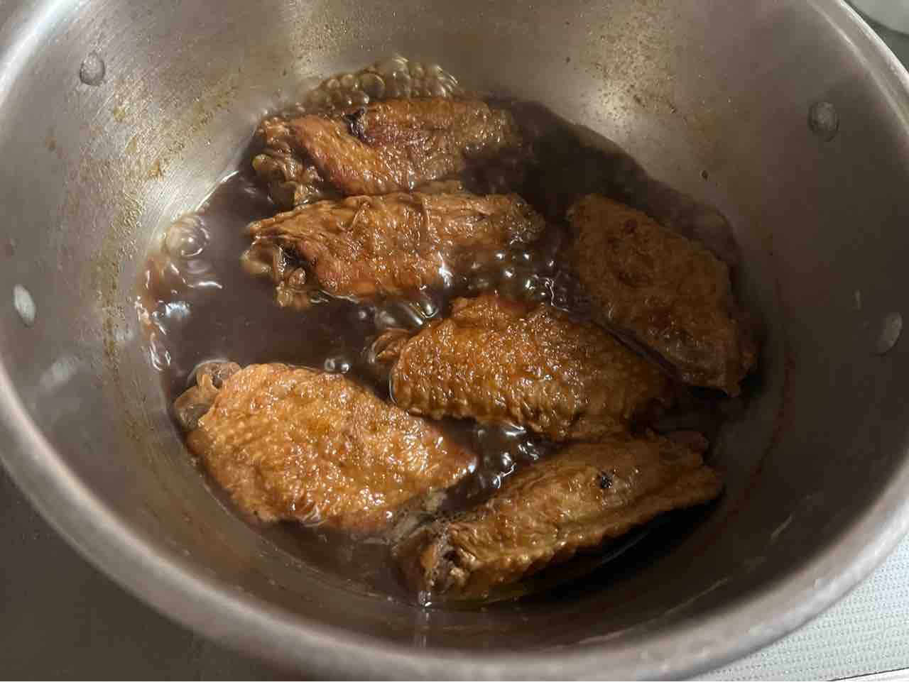 3、鍋に煮汁の材料と焼いた肉を入れ煮たたせアクを取ります