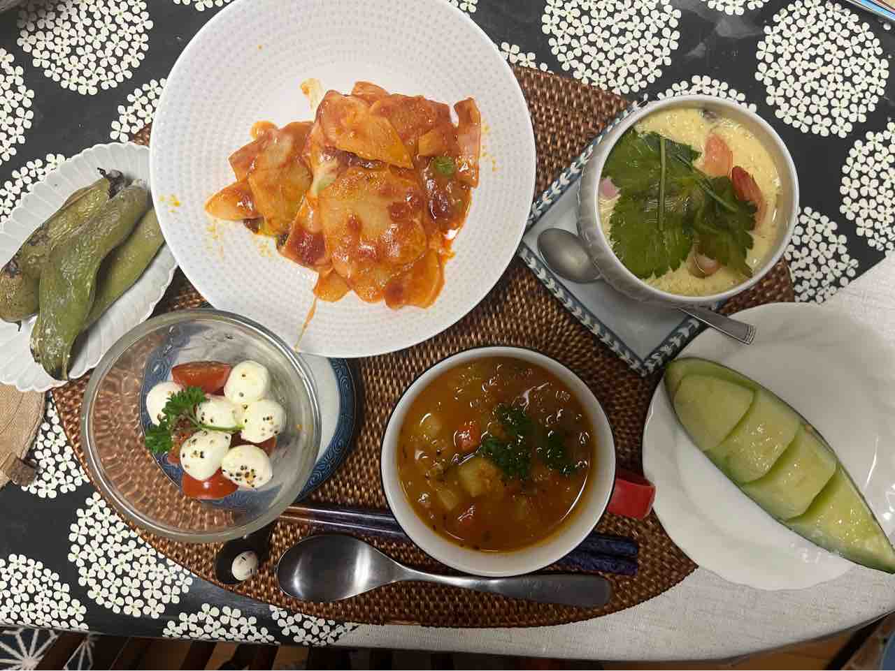 明日の食材買い出しデーを前に、残り少なくなった食材でテキトーに(いつもですが)