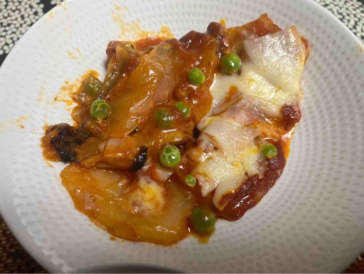 ジャガイモスライスを土台に、フライパンひとつで簡単ピザを作りました