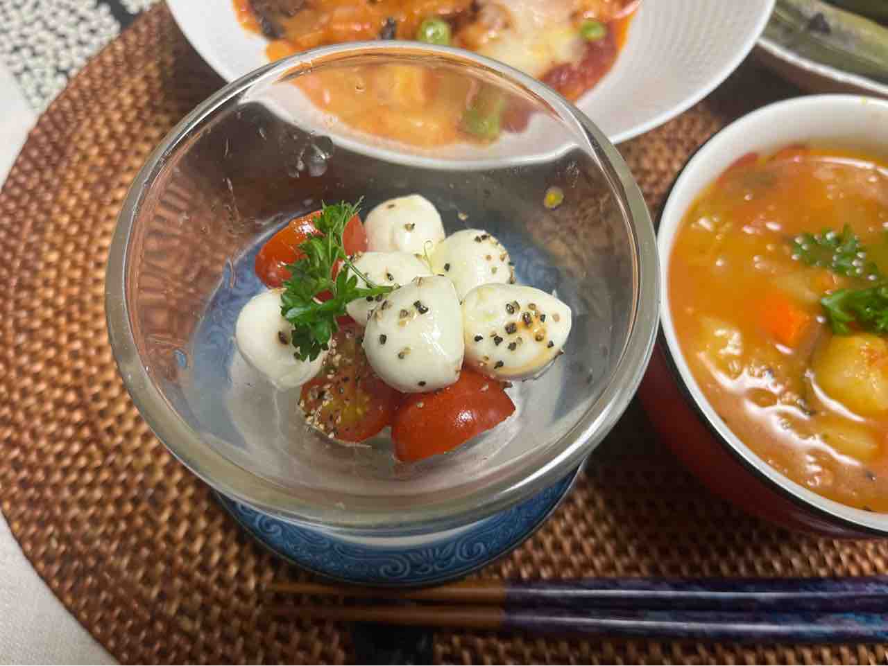 オリーブ油と粗挽き黒胡椒、岩塩をかけて完成