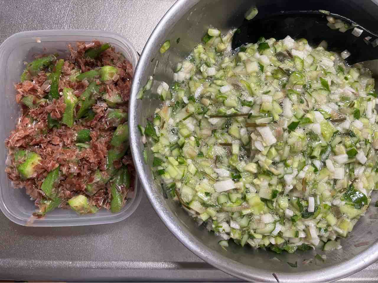 家庭菜園で採れるオクラで、ボイルオクラのおかか和えも作りました
