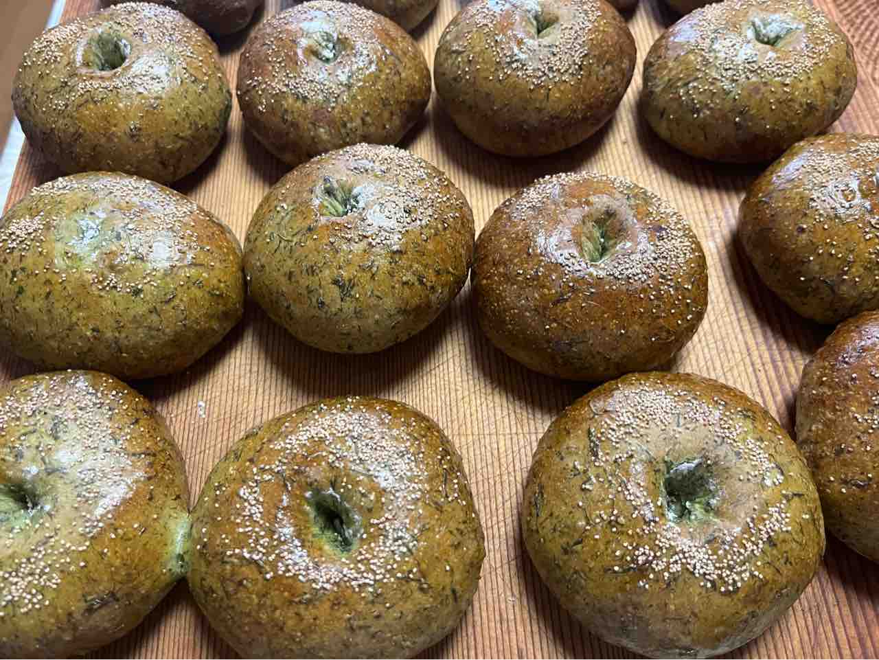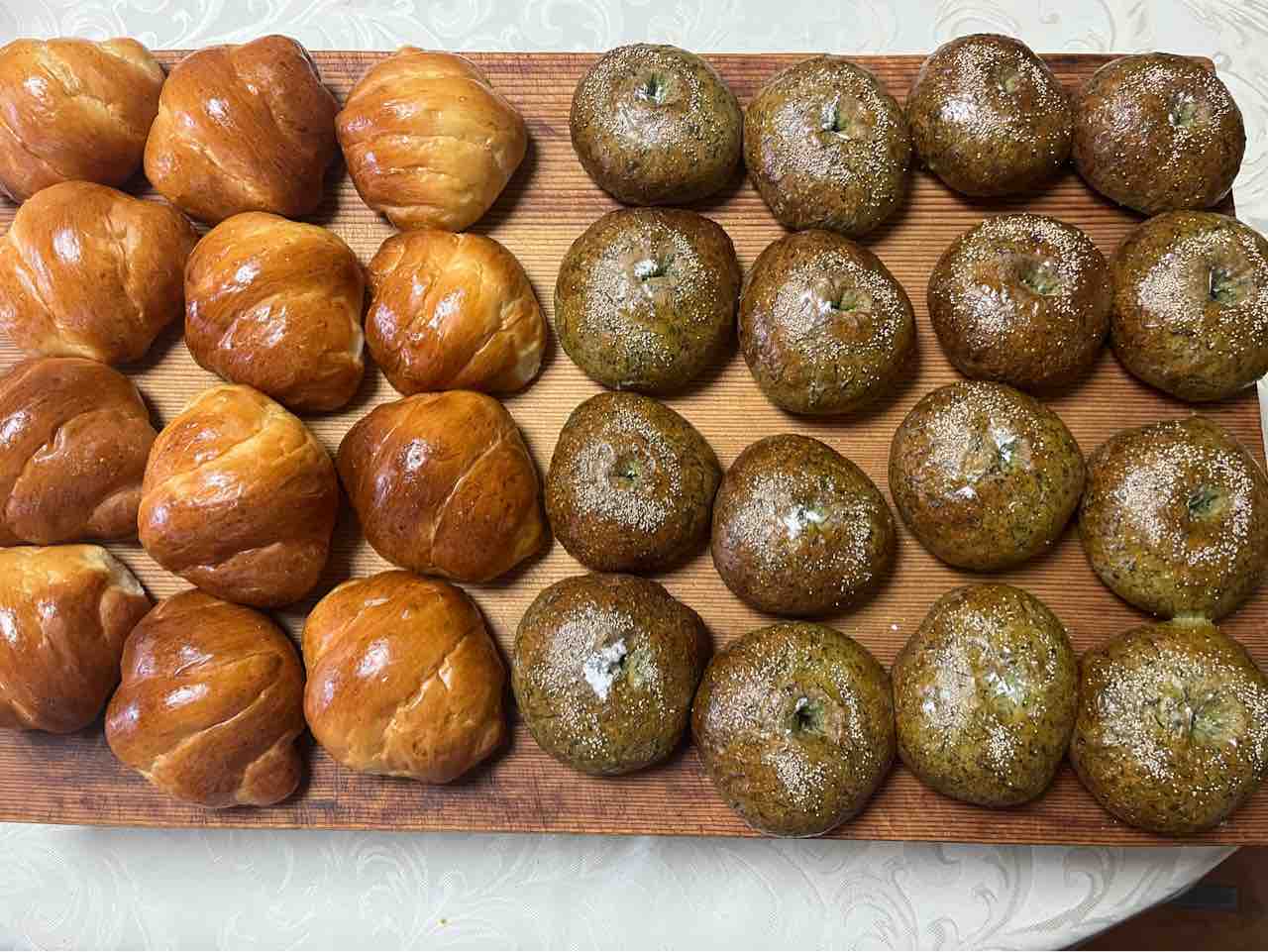 午前中に焼いたパンは、バターロールとヨモギアンパン