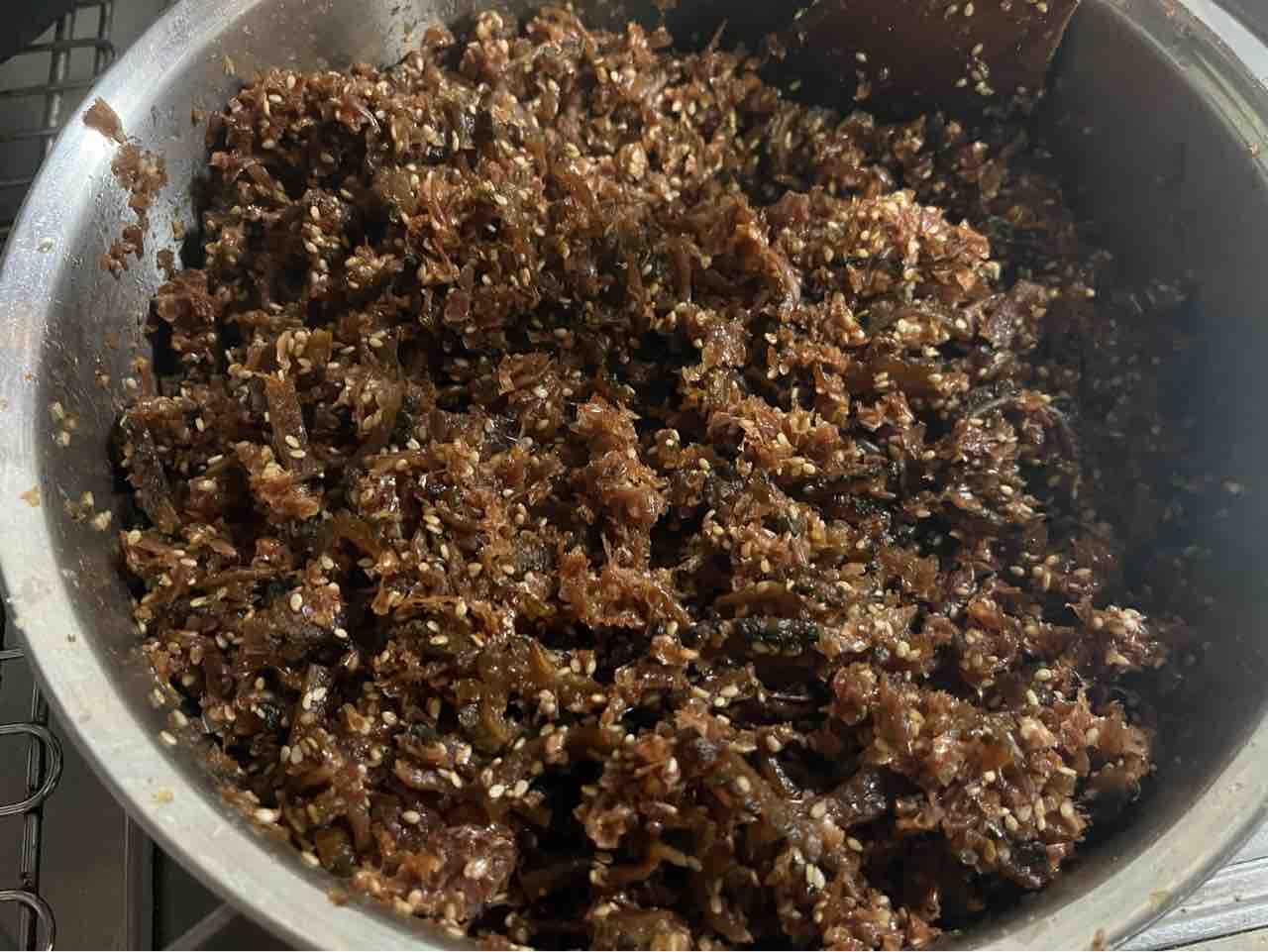 柔らかくなったら、白ゴマと鰹節を入れて混ぜたら完成