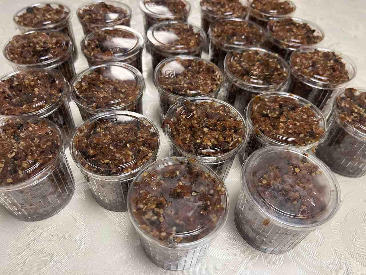 カップに詰めて冷蔵庫で保存