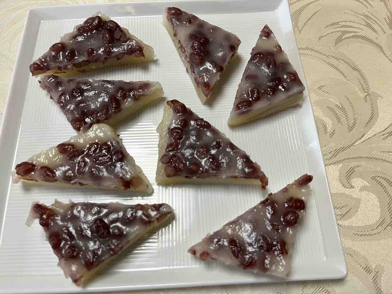 上に乗せた小豆は、その赤い色に邪を払う意味があるのです