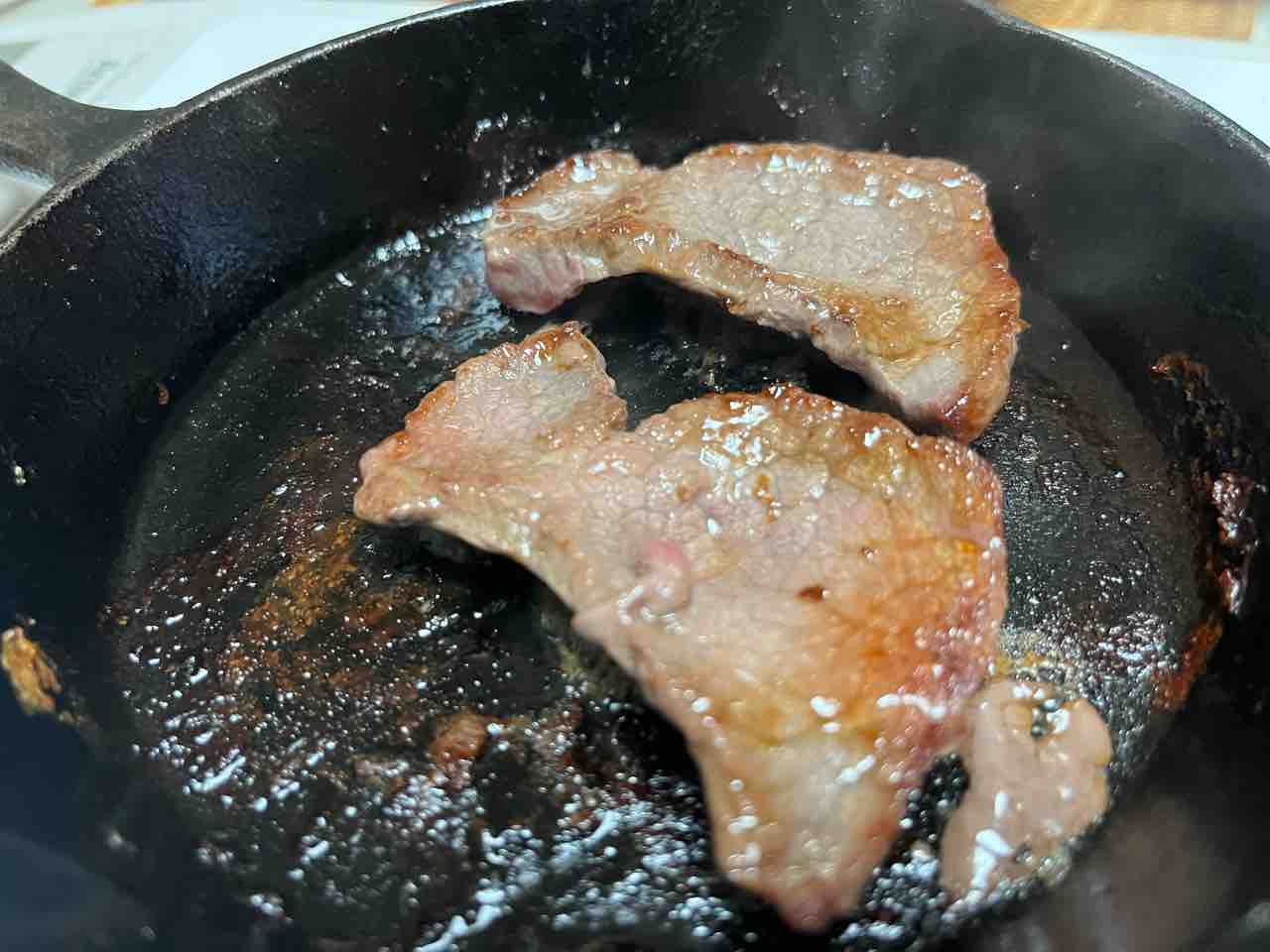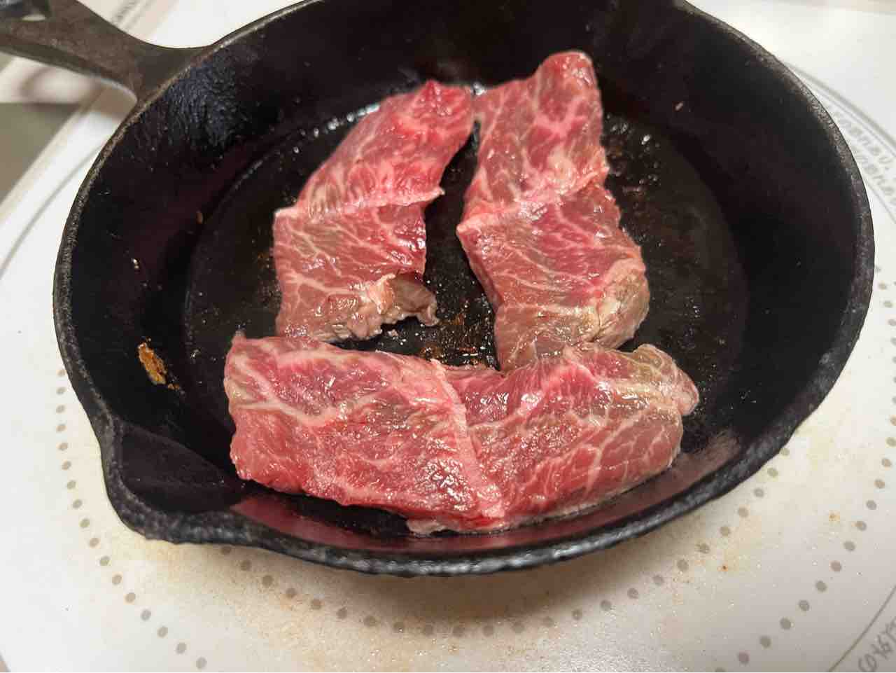 今夜は頂いた牛肉をスキレットで焼いて、おちょぼ口でチビチビ味わいながら美味しく頂きました
