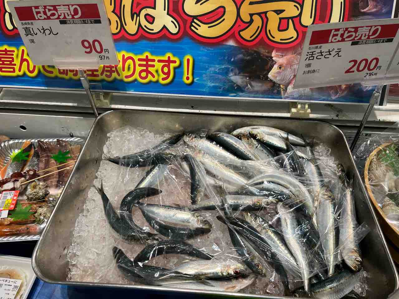 鮮魚コーナーで見つけた「真いわし 1匹90円」